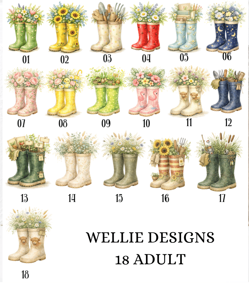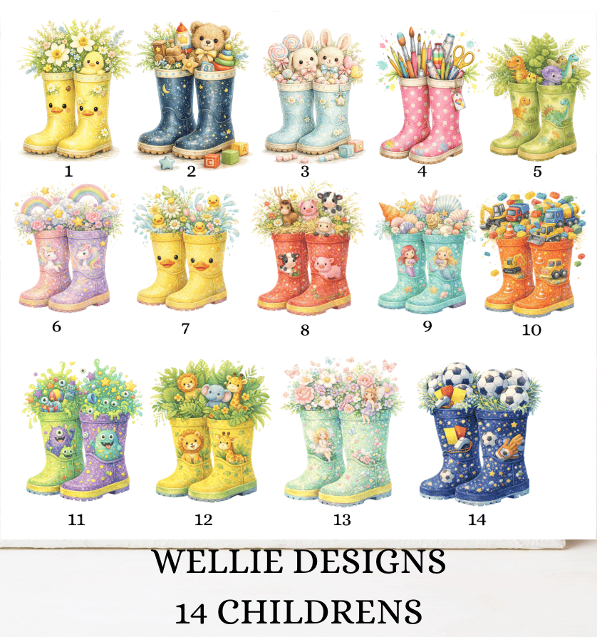 DIGITAL - PNG TRANSPARENT BACKGROUND + BLANK PRINTS FOR YOU TO ADD YOUR CUSTOMERS CHOICE OF WELLIES!
