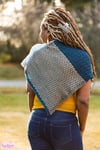 Though the construction appears to be uncommon, it is clean and easy to knit. The shawl is made of 3 sections: Two rectangular scarves surround a center square, each of them representing a facet of the sea.