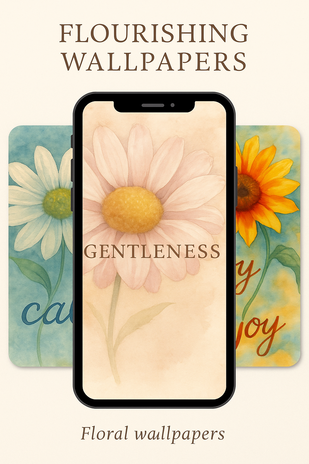 Bold Flower Intention Wallpapers – Calm, Joy, Gentleness (Digital Download)