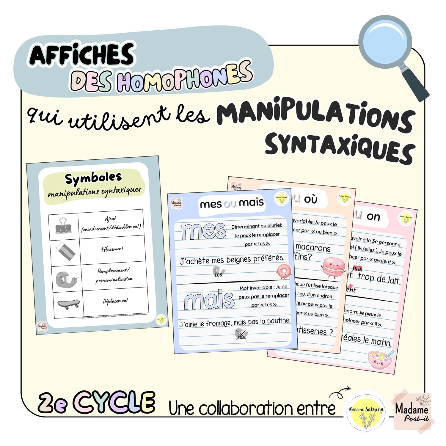 Nous avons créé un ensemble d’affiches sur les homophones pour le 2e cycle (format 8 1/2 x 11).
