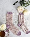 Finished sock dimensions: 7.5” (19.1 cm), 8.75” (22.2 cm), 10” (25.4 cm) circumference (Note: most people like their socks snug, so choose a finished sock size that is slightly smaller than your actual foot)