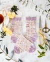 These socks came together in a similar way, and so I knew I needed to name them after my favorite magical treat. I wasn’t at all sure how the stitch pattern would work out, but I went crashing along and hoped for the best. When I saw how beautifully the stretched stitches stacked on top of each other after a few repeats, I felt a little of that same thrill.