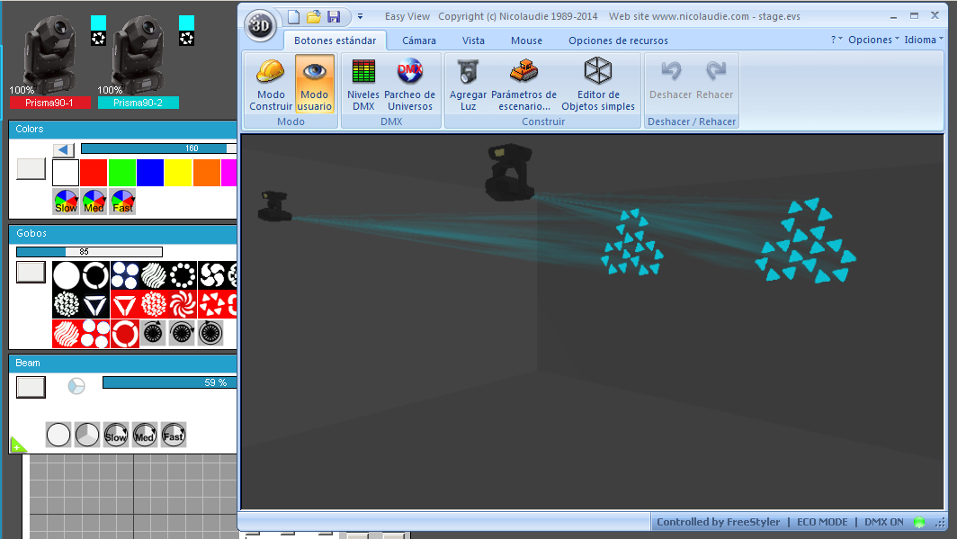 Esta Librería SSL2 está optimizada para trabajar con Magic 3d Easy View. Es decir para ver una representación 3D de las secuencias que estemos realizando con Freestyler, QLC+ o cualquier otro soft que se conecte con Magic 3d.