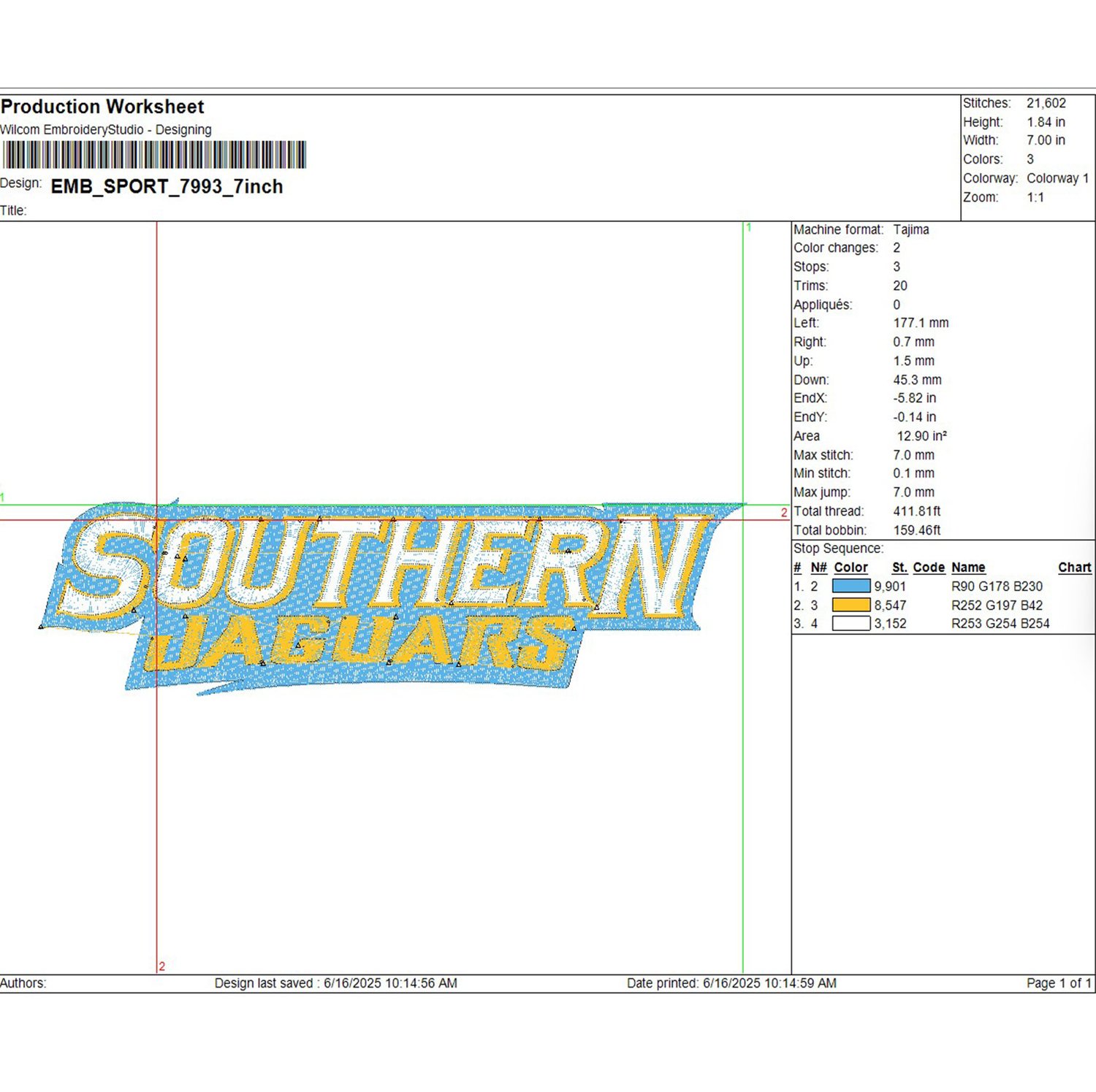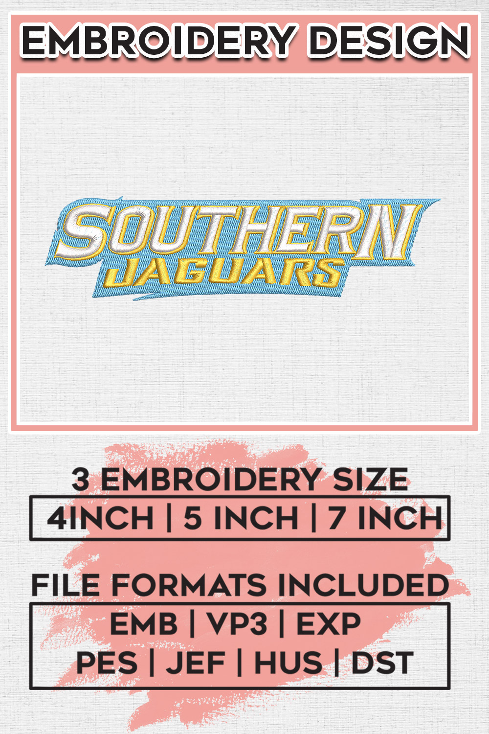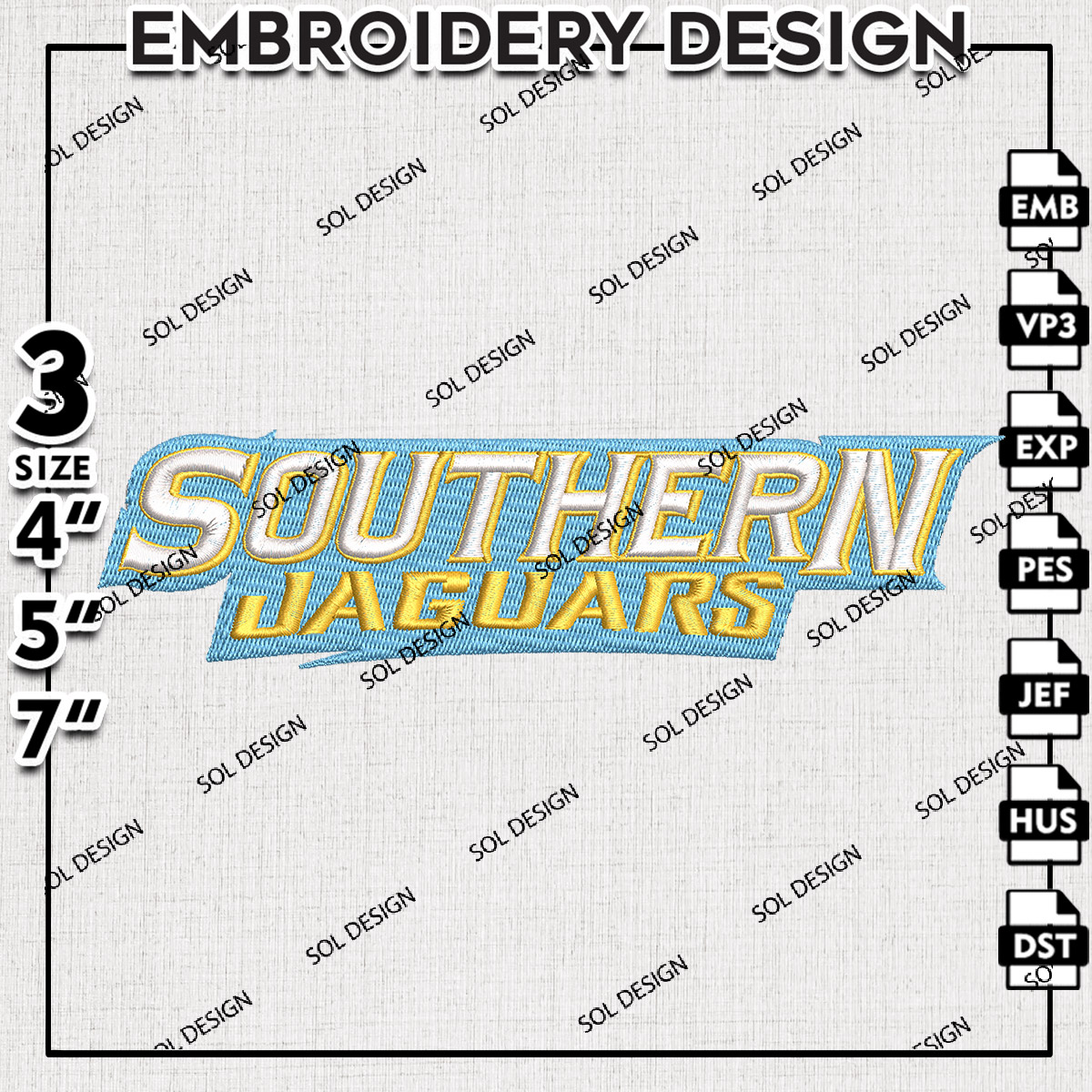 Southern Jaguars College Football Team Wordmark Logo Embroidery Designs, NCAA Southern Jaguars Machine Embroidery Files, NCAA Logo embroidery designs, NCAA Jaguars Logo, Digital Download