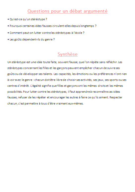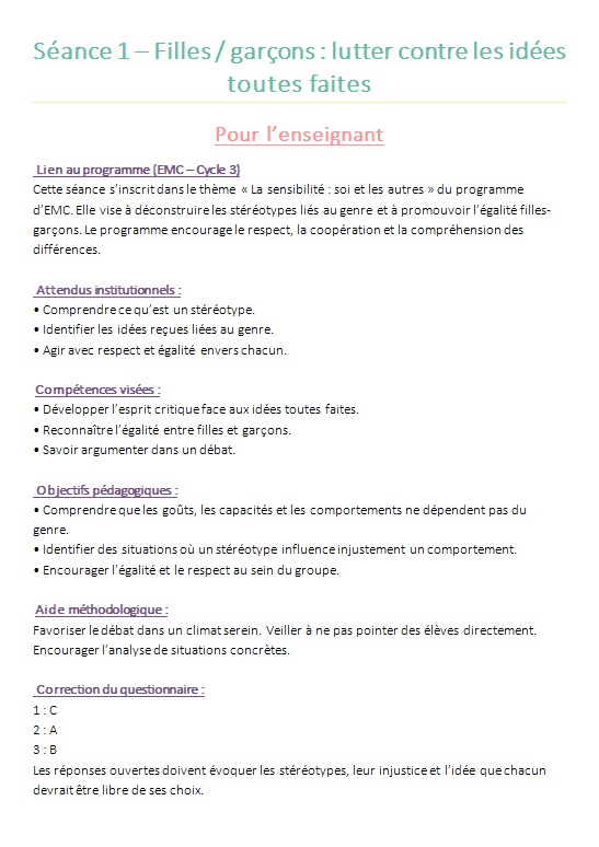 🔍 Objectif de la séquence : comprendre les stéréotypes et promouvoir l’égalité au Cycle 3