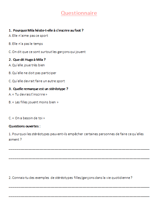 ✔ Déconstruire des idées reçues (notamment filles/garçons)