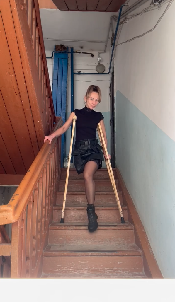 Do you like leather clothes? I do! Please find me in my newest video dressed in a mini skirt and presenting you my unique body and walking skills. This video is very unique filmed in upright position and also converted to an upright movie without losses. Have fun.
