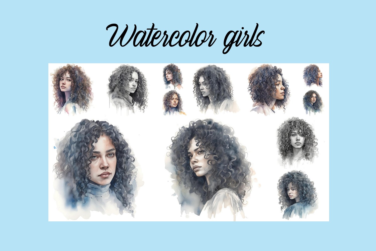 Introducing Watercolor girls – a collection of elegant portraits featuring girls with curly hair, brought to life in soft, flowing watercolor tones. Perfect for use in wall art, social media posts, digital planners, phone wallpapers, sublimation projects, and paper crafts. These high-resolution images will add a touch of artistic sophistication to any design. Ideal for creatives looking for unique, feminine artwork that evokes natural beauty and artistic expression.