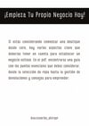 - Si estás considerando comenzar una boutique desde cero, hay varios aspectos clave que deberías tener en cuenta para establecer un negocio exitoso. En el pdf. encontraras una guía con los puntos esenciales que debes considerar, desde la selección de ropa hasta la gestión de devoluciones y consejos para emprender.