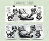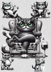 20 Cute, funny, quirky whimsical cats. All monochrome black and white with green eyes, and each one features a tiny heart embellishment