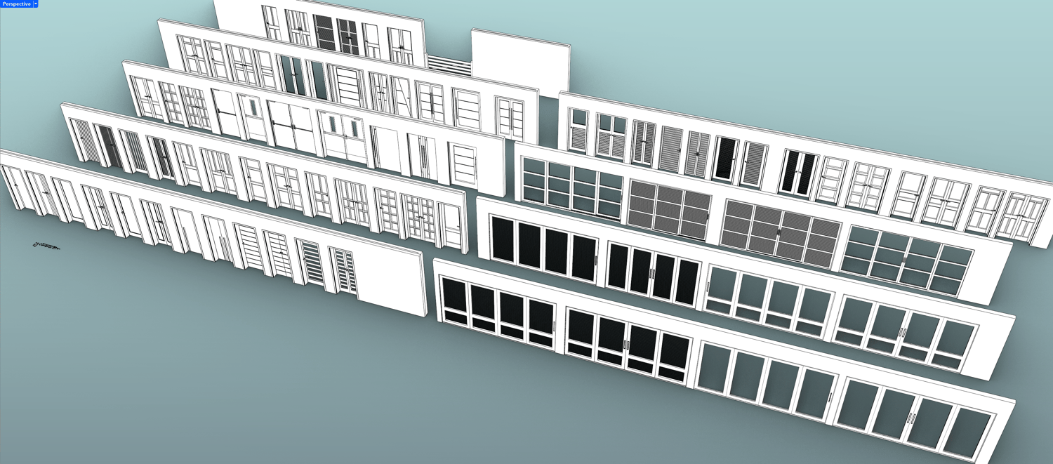 This template have 80 different door types, including pivot, hinged, bi-fold, and sliding options. All of them allow you to easily adjust width and height, and many also let you customize details like the number of divisions, as well as louvre size and quantity.