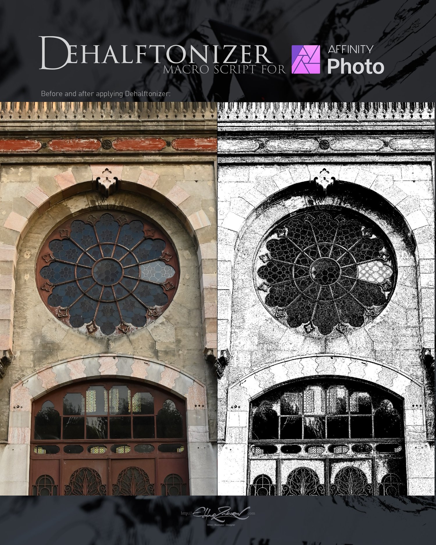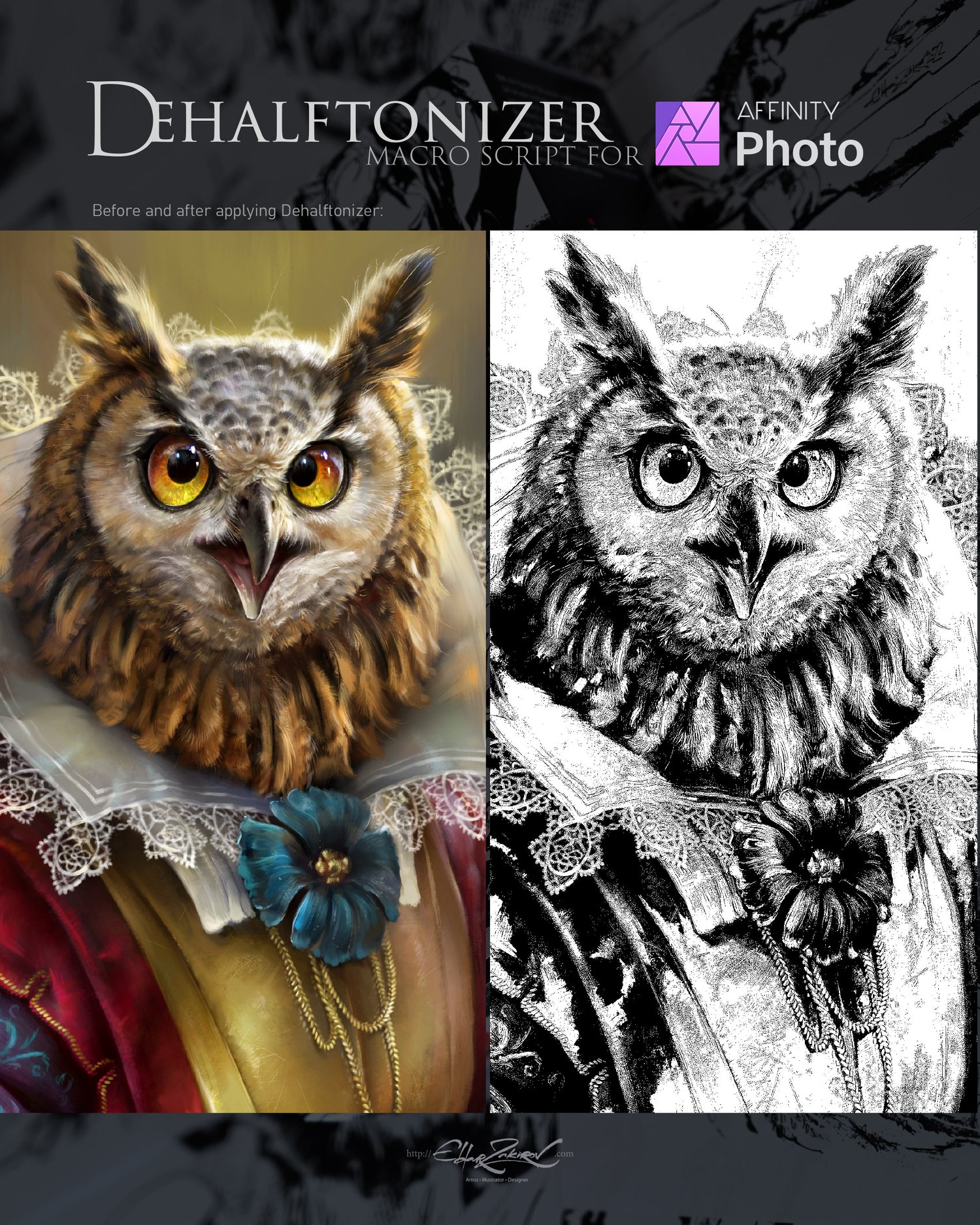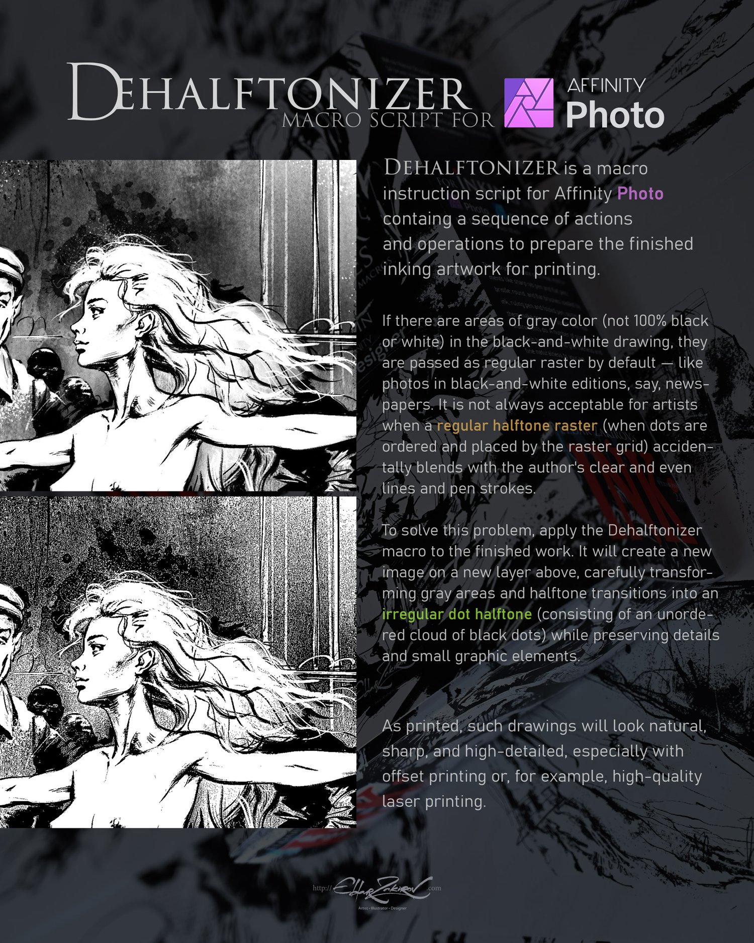- INK. Dehalftonizer by Eldar Zakirov.afmacros. The macro action for turning gray areas to dotted halftones with 100% black or white for printing is saved as a Library macro. This is a more convenient option than the previous one.