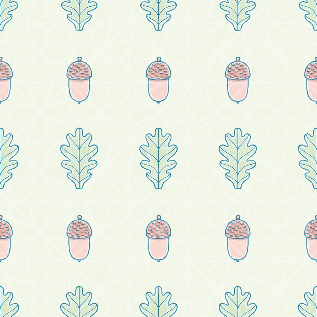 Oak leaves and acorns seamless vector pattern. Outlined botanical illustration background.