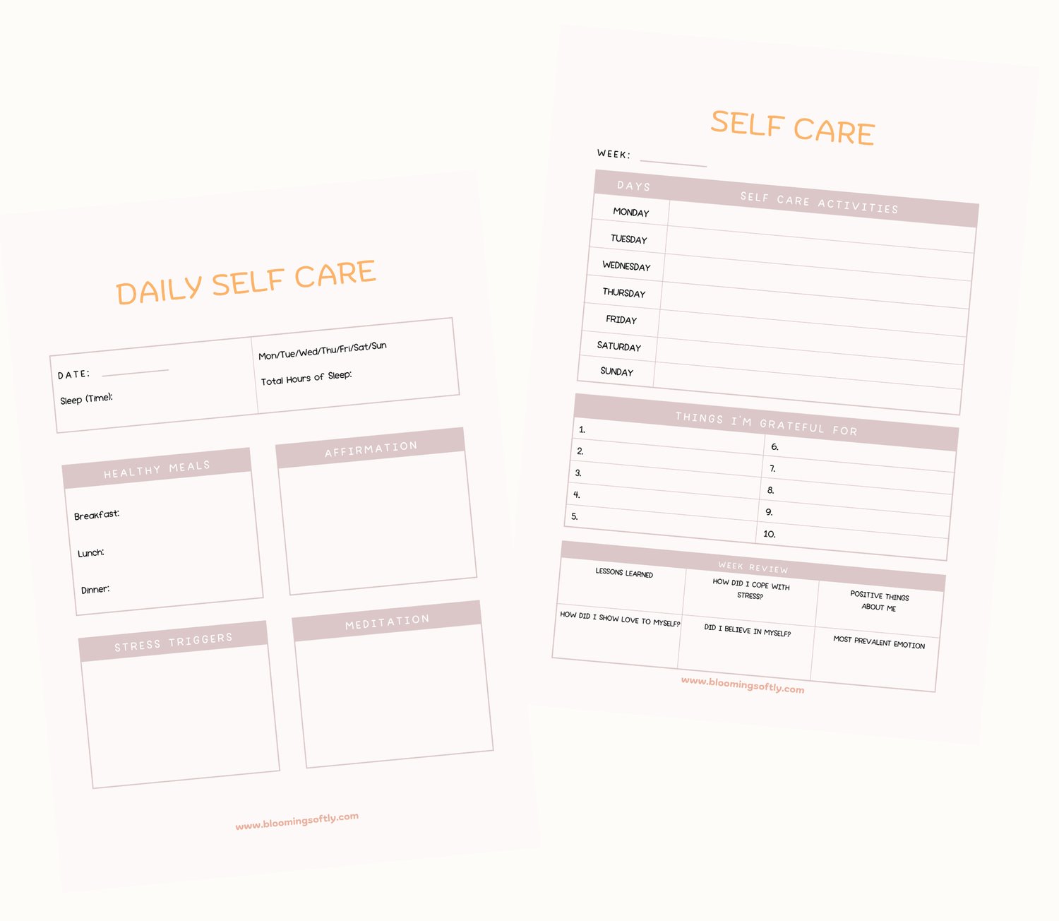 - 2 daily self care pages