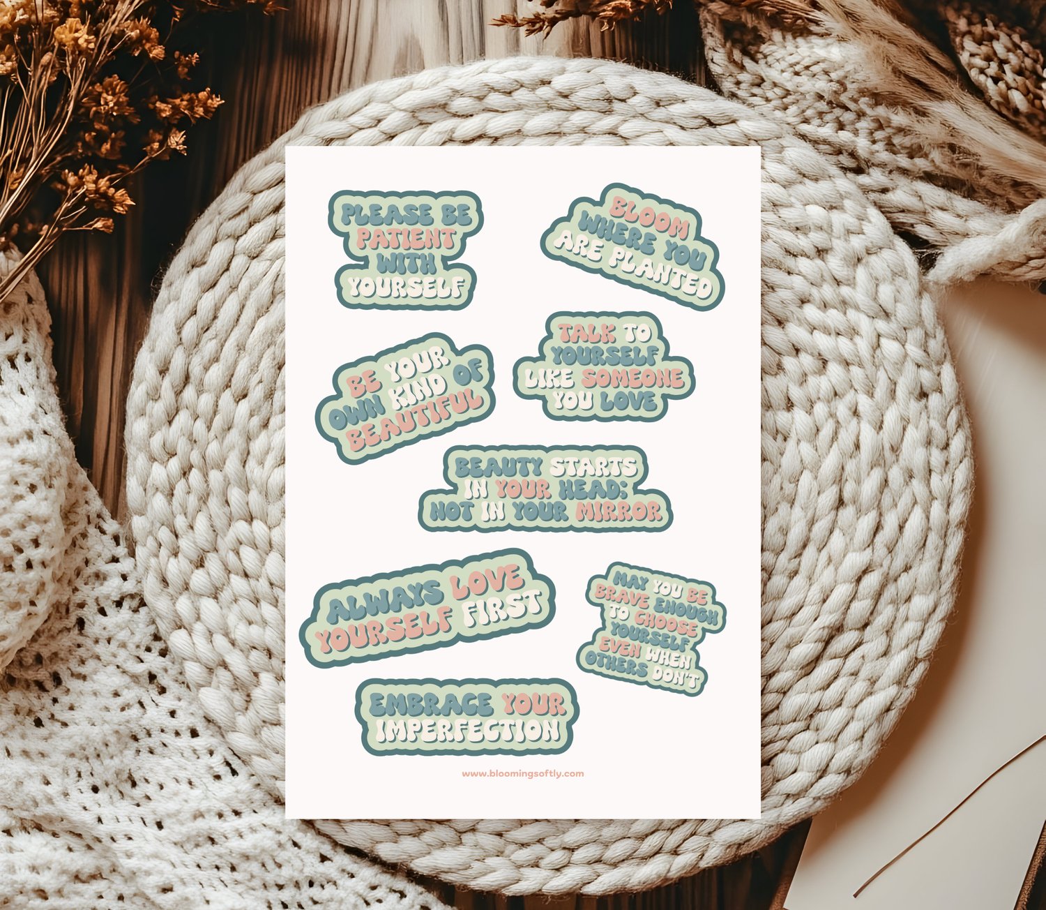 - 1 page with self love stickers