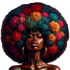 Unleash power, beauty, and unapologetic confidence with this vibrant Floral Crowned Black Queen PNG Bundle. Each design features a fierce and radiant Black woman with a voluminous afro adorned with richly colored roses — blending natural hair pride with bold floral elegance.