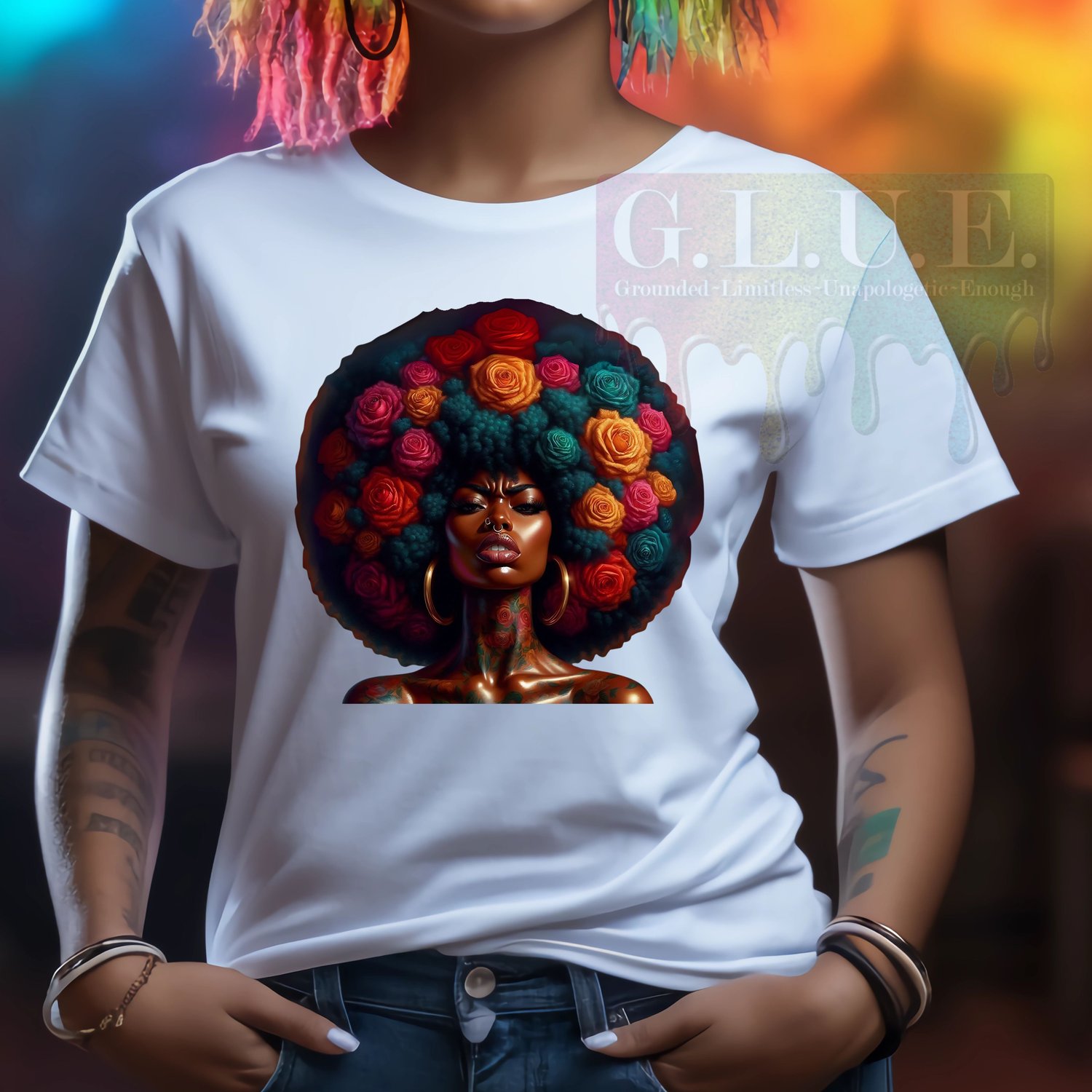 Floral Crowned Black Queen PNG – Bold Afro Art with Colorful Roses | High-Resolution Digital Download (Bundle)