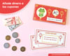 Si bien la tradición es poner dinero real en el sobre rojo, si estas usando este recurso en clase, podías usar dinero de juguete que los niños pueden contar y sumar. El pack también incluye cupones que se pueden usar en su lugar.