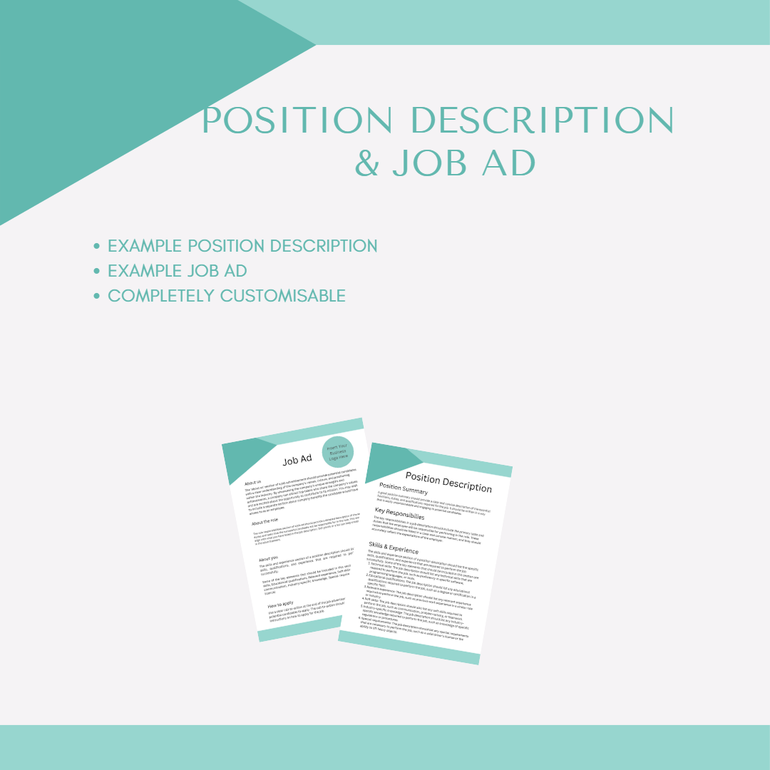 An example position description and job ad for a range of roles across multiple industries are available on Online HR Assistant.