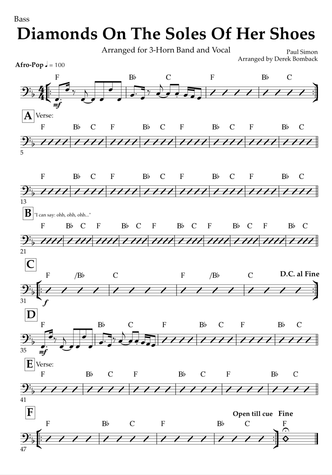 A Country Girl in Paris by John Denver. Key of F major. Arranged for 3 horn band and vocal (Trumpet, Tenor Sax, Trombone, Guitar/Keys, Bass Guitar, Drums & Lyric Sheet).