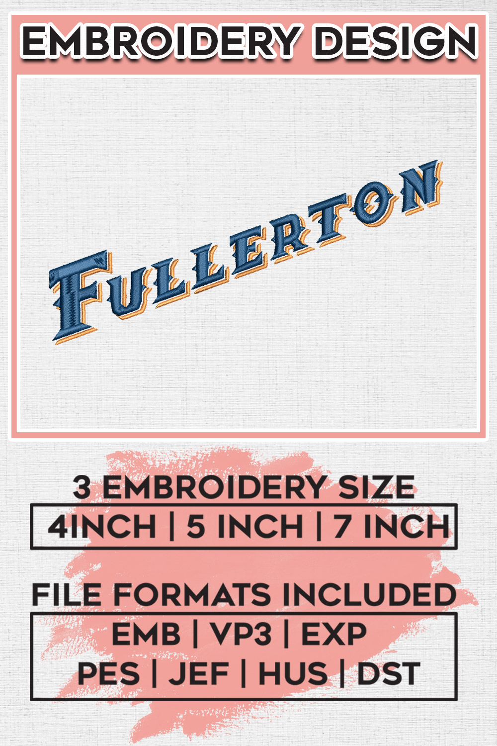 Ncaa Cal State Fullerton Titans Wordmark Machine Embroidery Designs, Ncaa Logo Embroidery Files, California State University, Fullerton Logo Embroidery Design, NCAA CSUF Titans Machine Embroidery Design, Digital Download