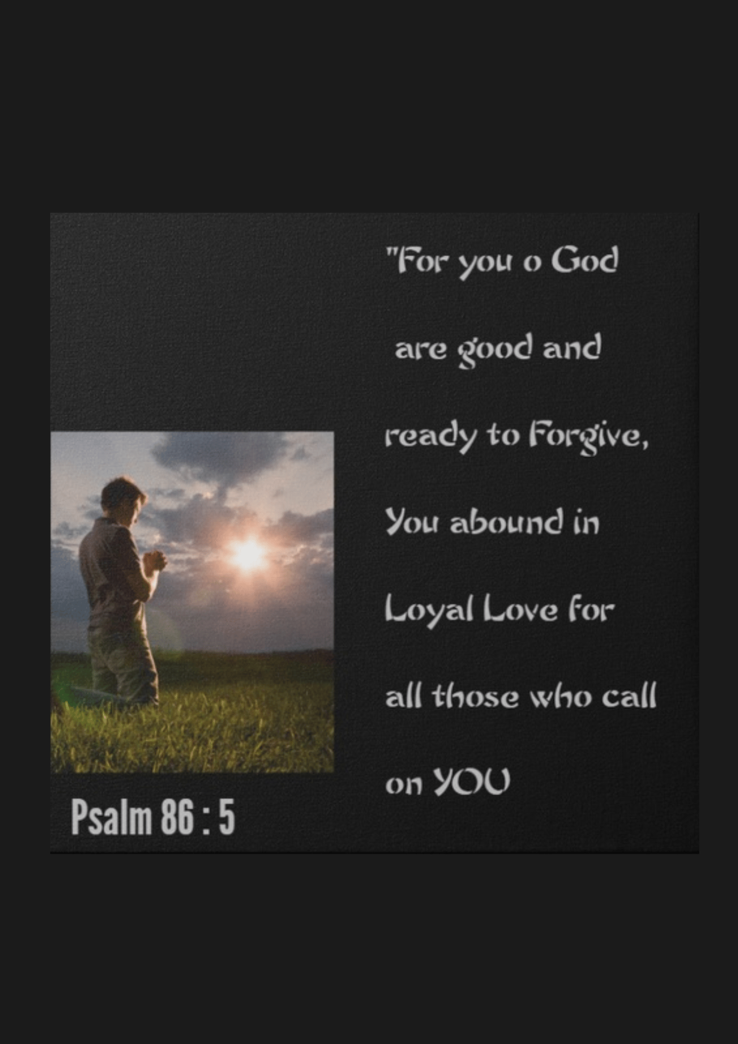 God is always ready to forgive, full of love and mercy for all who call on Him. Psalm 86:5 reminds us that no matter how far we've strayed or how broken we feel, God forgives those who are truly sorry for their past mistakes and are determined not to repeat them. This is a PDF you can just print it and style any frame you would like and hang it in the house