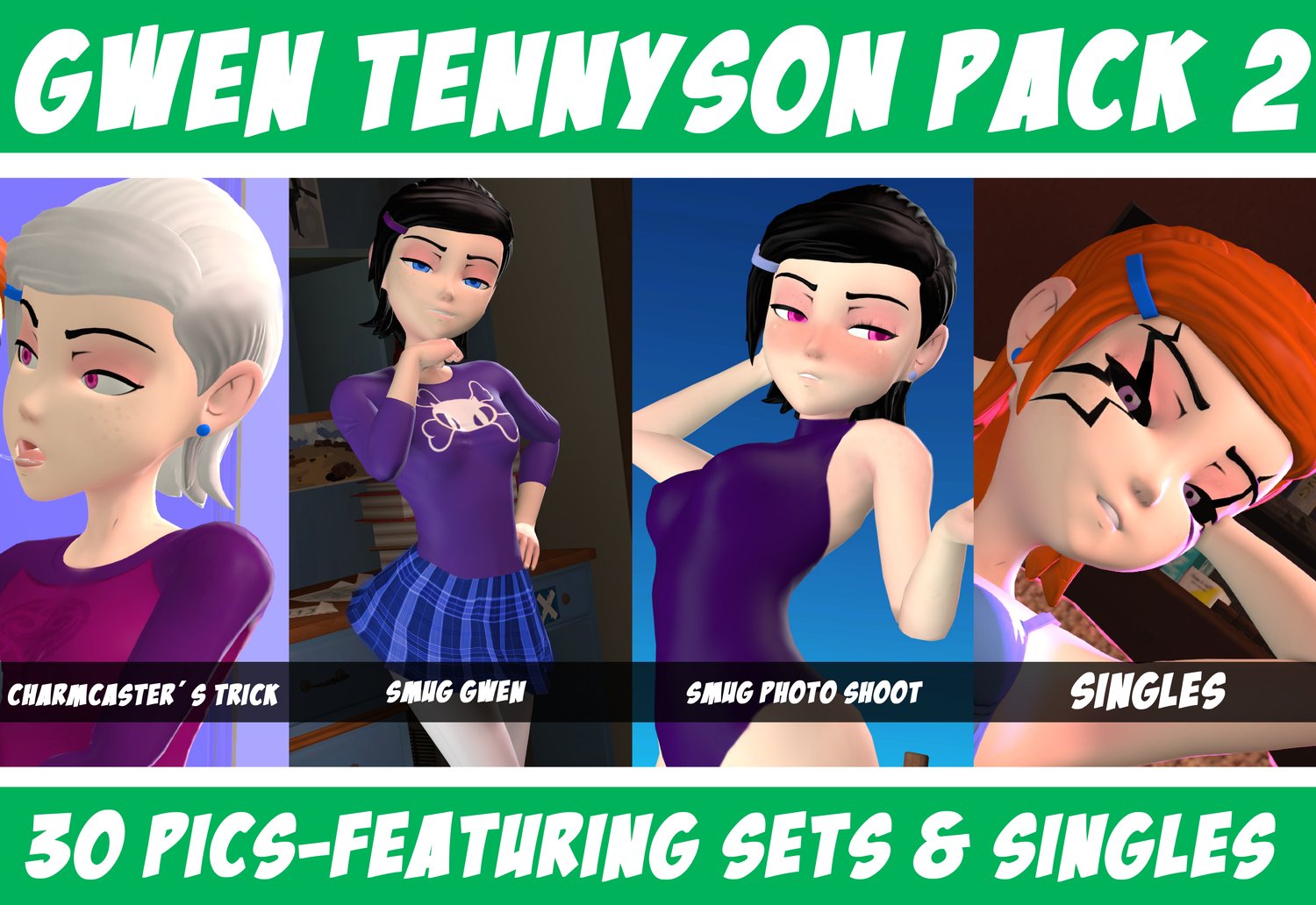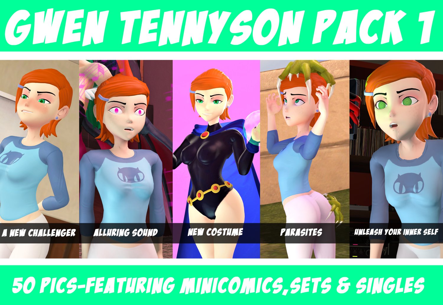 Gwen Tennyson Packs 1-3 contain 104 pictures themed around the Ben10 character Gwendolyn Tennyson. Other characters may appear in some pics.