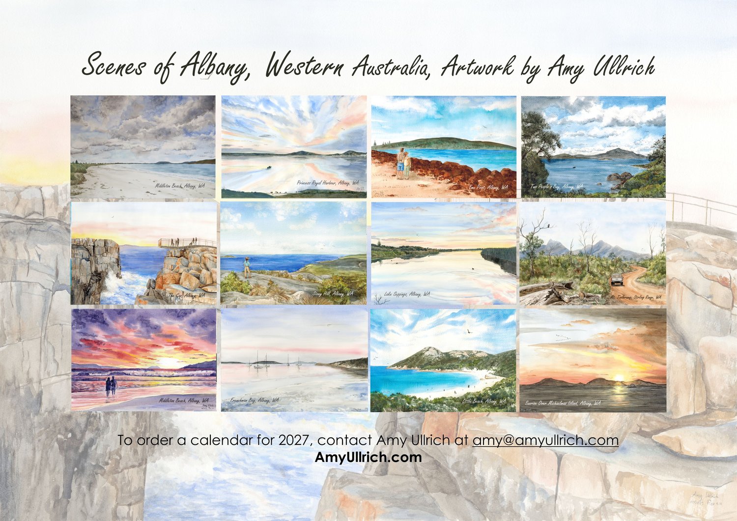 A 2026, spiral-bound calendar featuring artwork by Amy Ullrich.