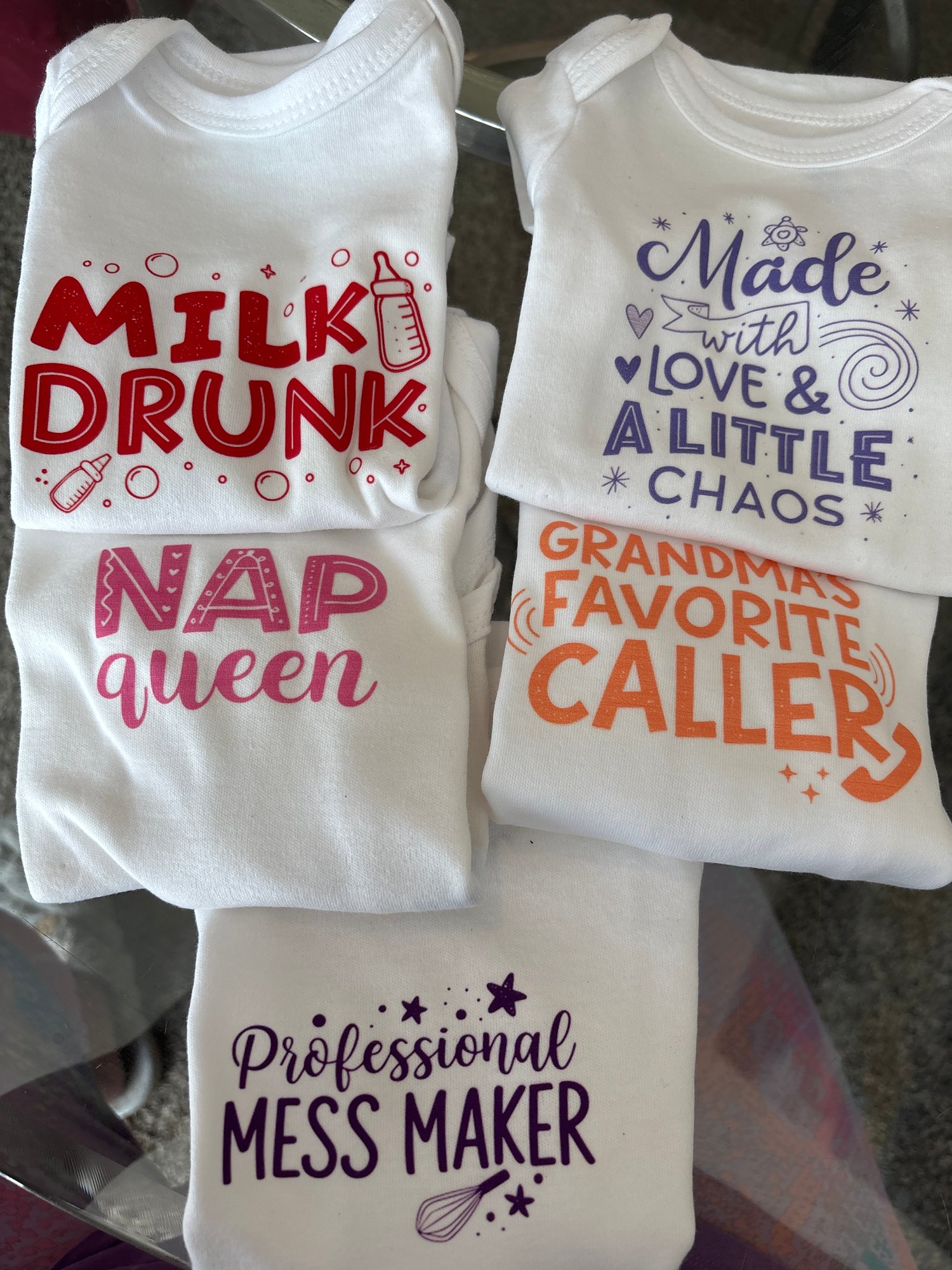 Set of 5- 100% cotton Onsies from newborn to 9 months.