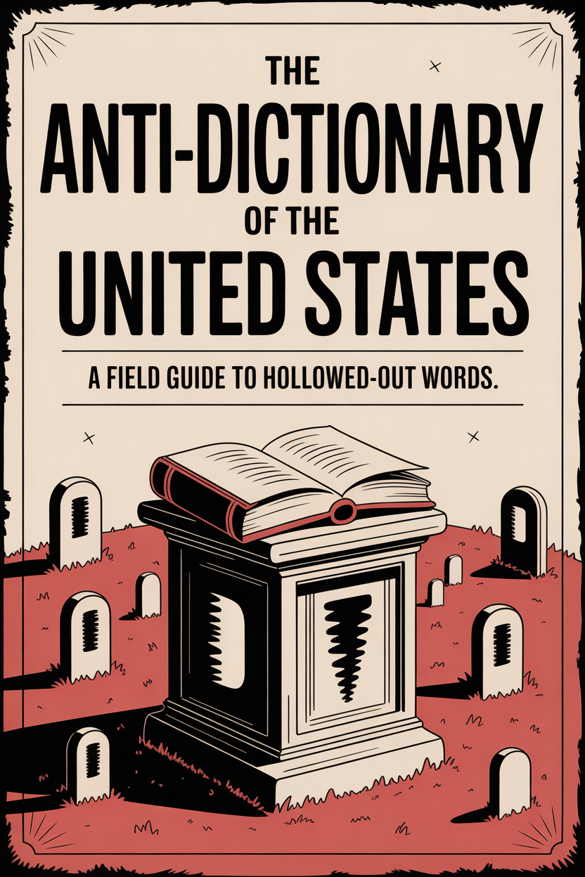 The Anti-Dictionary of the United States™ is a highly sellable cultural autopsy that doesn’t define words—it buries them, charting the death of meaning across late-stage American culture. Structured like a proper reference, this book is irreverent like a wake, offering autopsies of hollowed-out concepts like "authenticity," "trust," and "democracy." Part satire, part elegy, and part survival manual, it is perfectly timed for an audience exhausted by buzzwords and branding. This book package has strong potential for viral social content and premium performance lectures, offering a unique and necessary cultural critique.