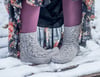 These cozy socks with simple cable details are just the thing to wrap your feet in while sitting in front of the fireplace.