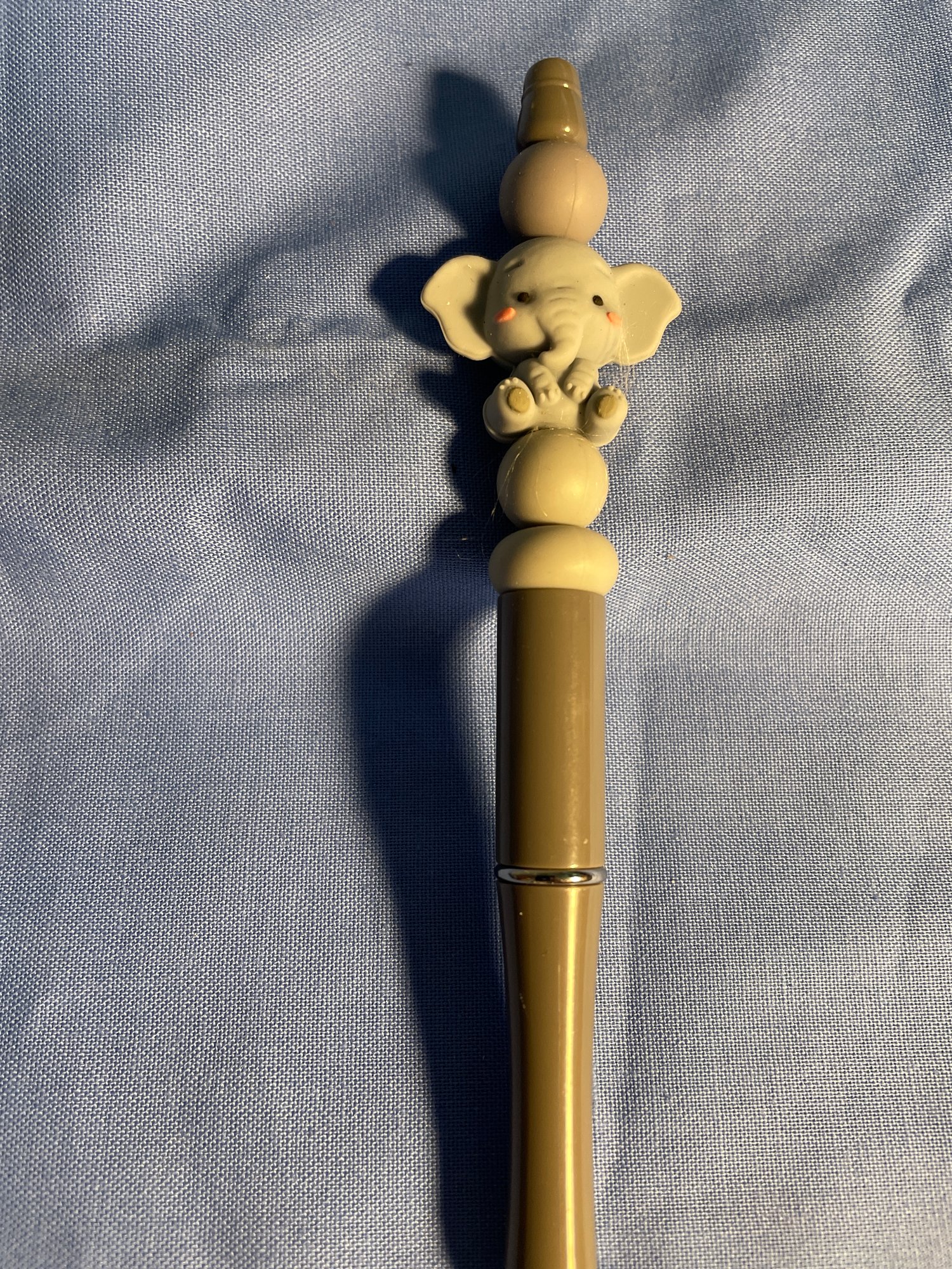 Matte grey pen with a baby elephant on too