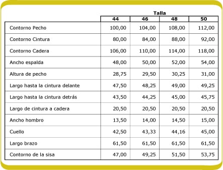 Verifica las medidas de cada talla en el cuadro adjunto.