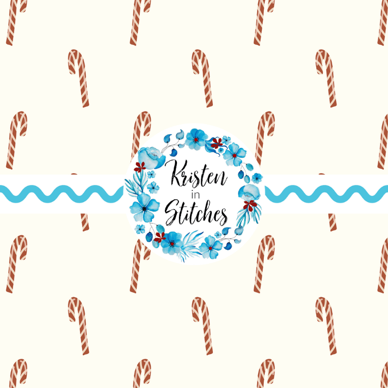 Simple candy canes on ivory, coordinate for Rustic Christmas collection.