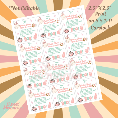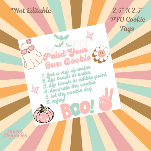 These groovy, retro Halloween themed Paint Your Own Cookie tags are a great way to dress up your cookie packaging!