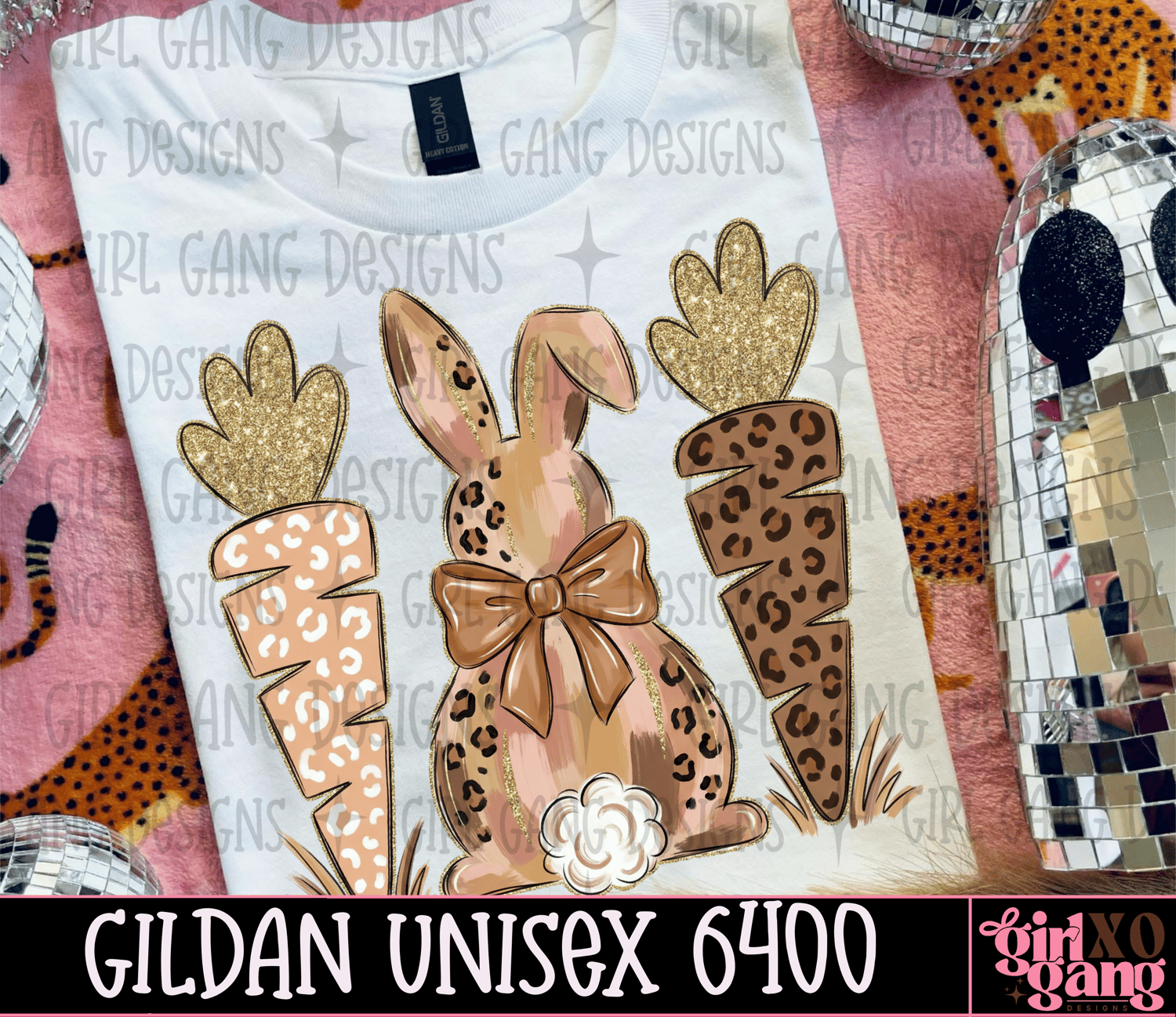 Cute leopard easter bunny carrot Gildan unisex tee