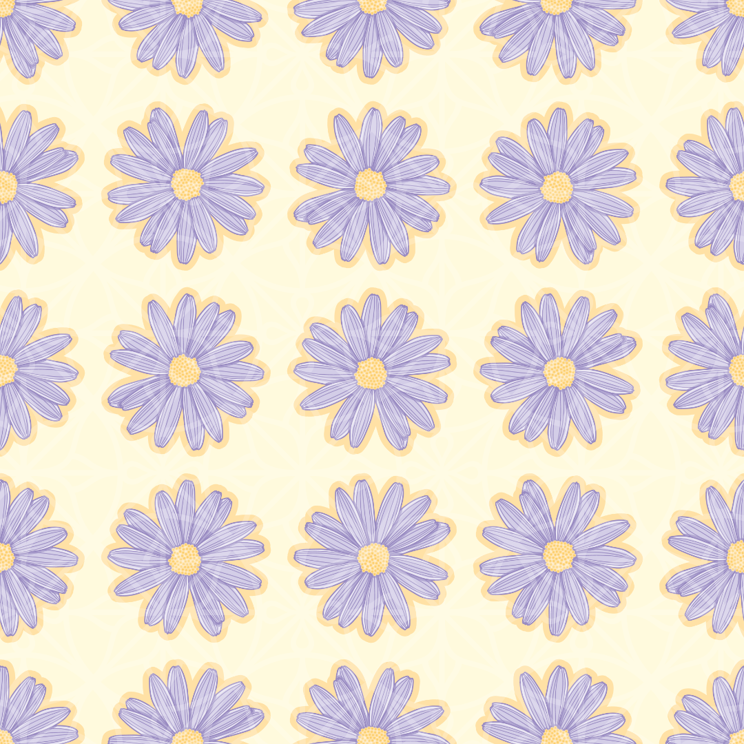 Doodle daisies background vector pattern. Purple floral seamless illustration.