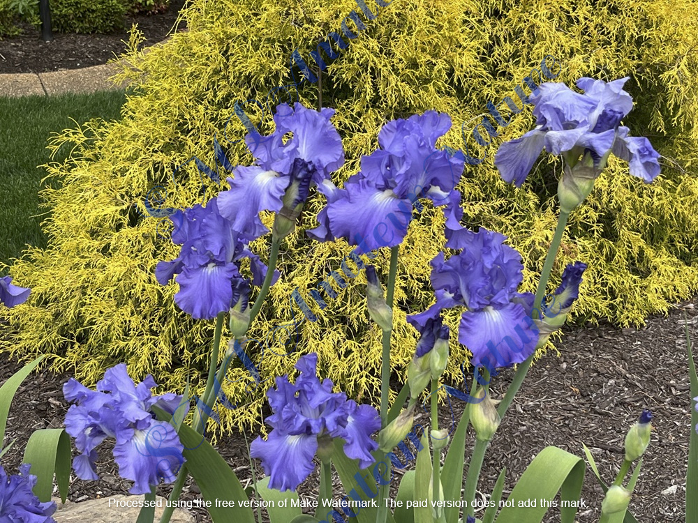 Amateur photograph of a patch of Bearded Iris (Iris × germanica) flowers. Image taken in Virginia, USA. Image pixels 4032x3024. Can be easily resized to suit buyer needs. Purchase gives image without any watermark.