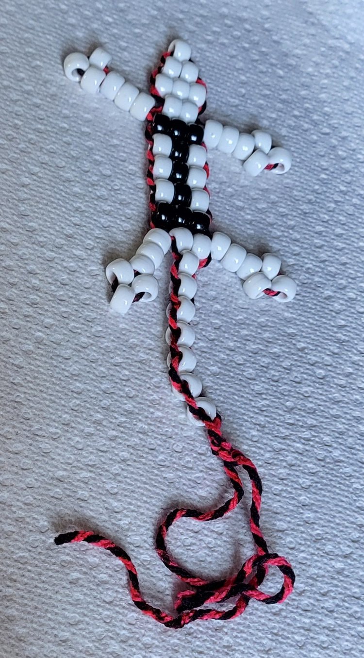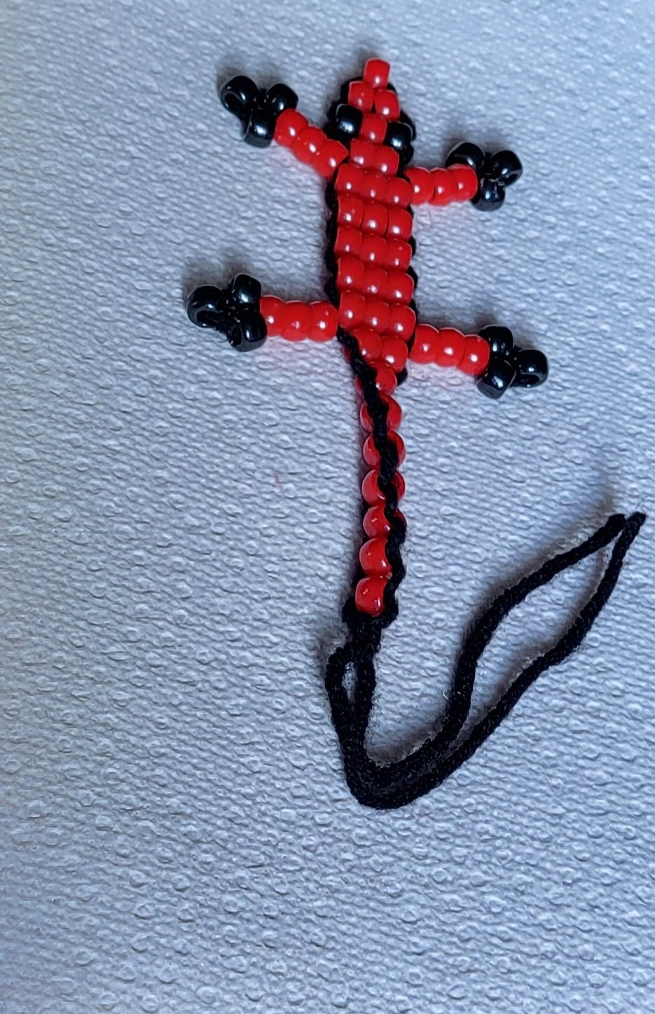 This two tone familiar features Red and Black beads carefully woven together with yarn. Each one is unique, full of personality, and handmade with love and magyk.