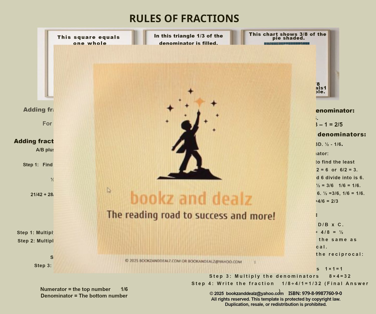 Fraction rules explained on one page, Beginner-friendly and easy to understand, Ideal for classroom and home learning, Supports visual and quick-reference learning, Builds confidence in early math skills. This elementary math chart clearly explains the basic rules of fractions on one simple page. Students learn how fractions work, including parts of a whole and key fraction rules, helping build strong math foundations through easy examples and visual learning.