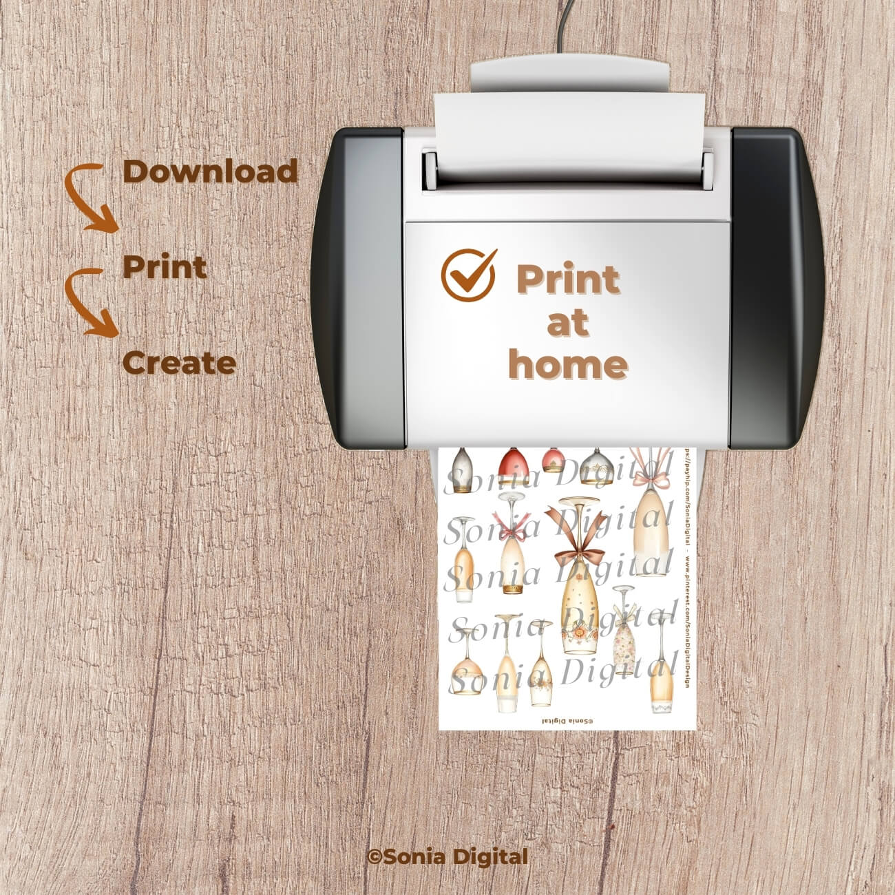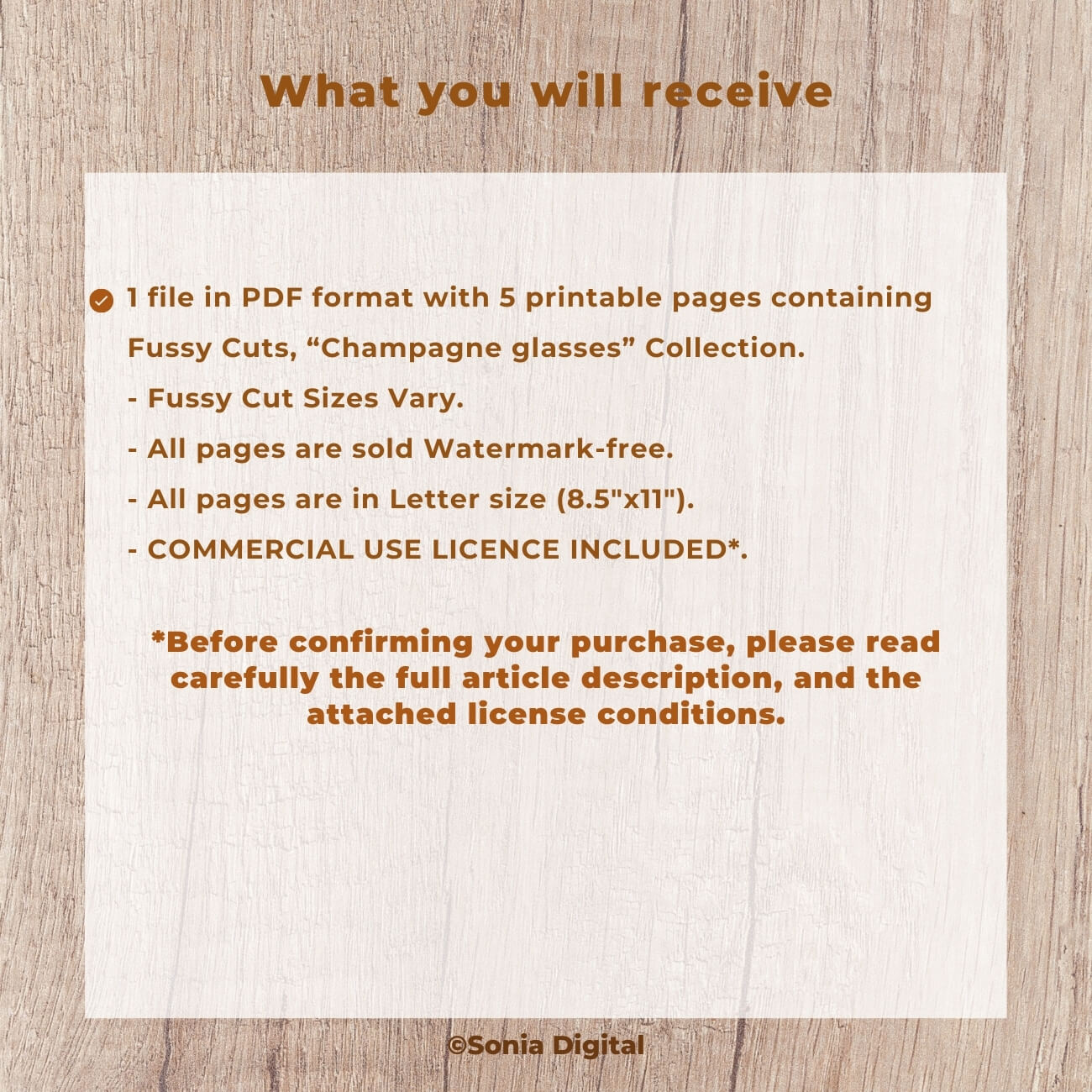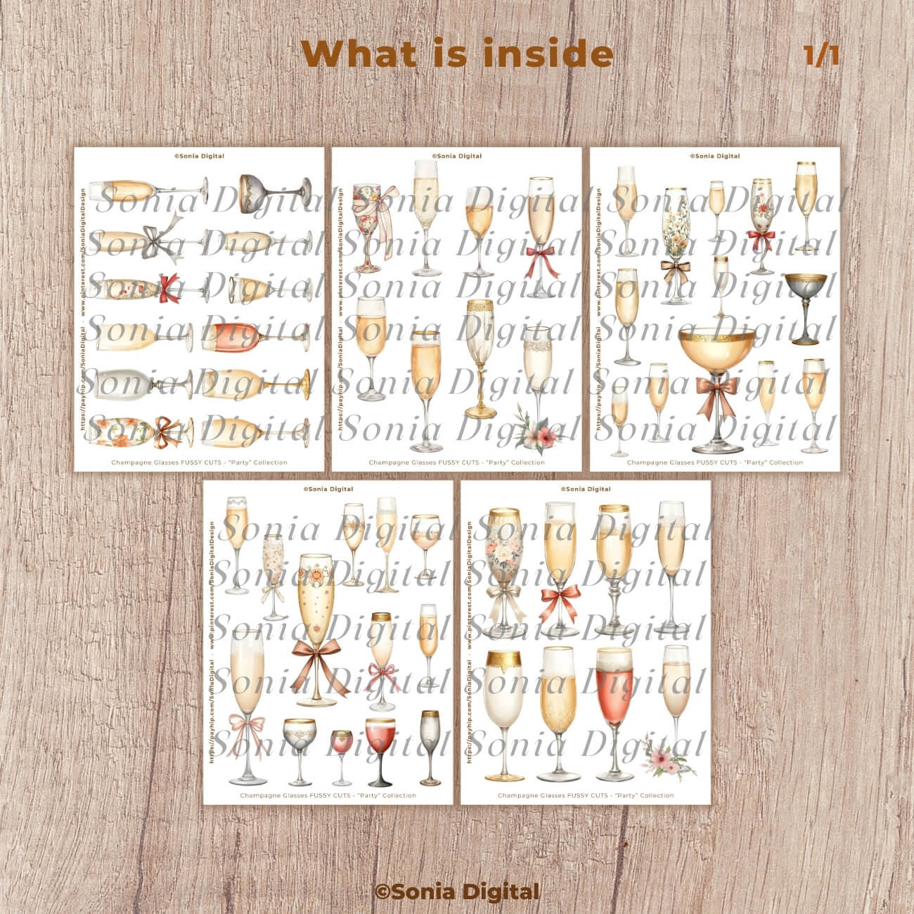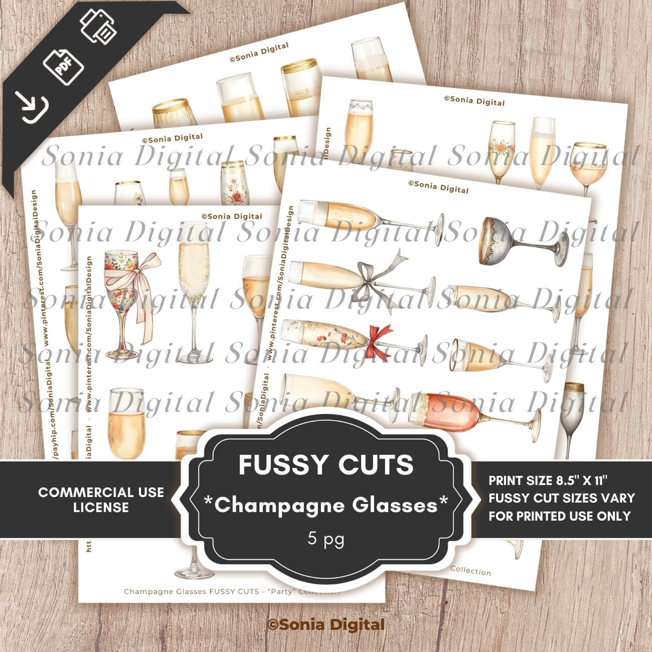 🔸5 printable pages containing Fussy Cuts, “Champagne Glasses” Collection. In Letter size, 8.5”x11”. All pages are sold watermark-free. Fussy Cut Sizes vary. Commercial use license included*.