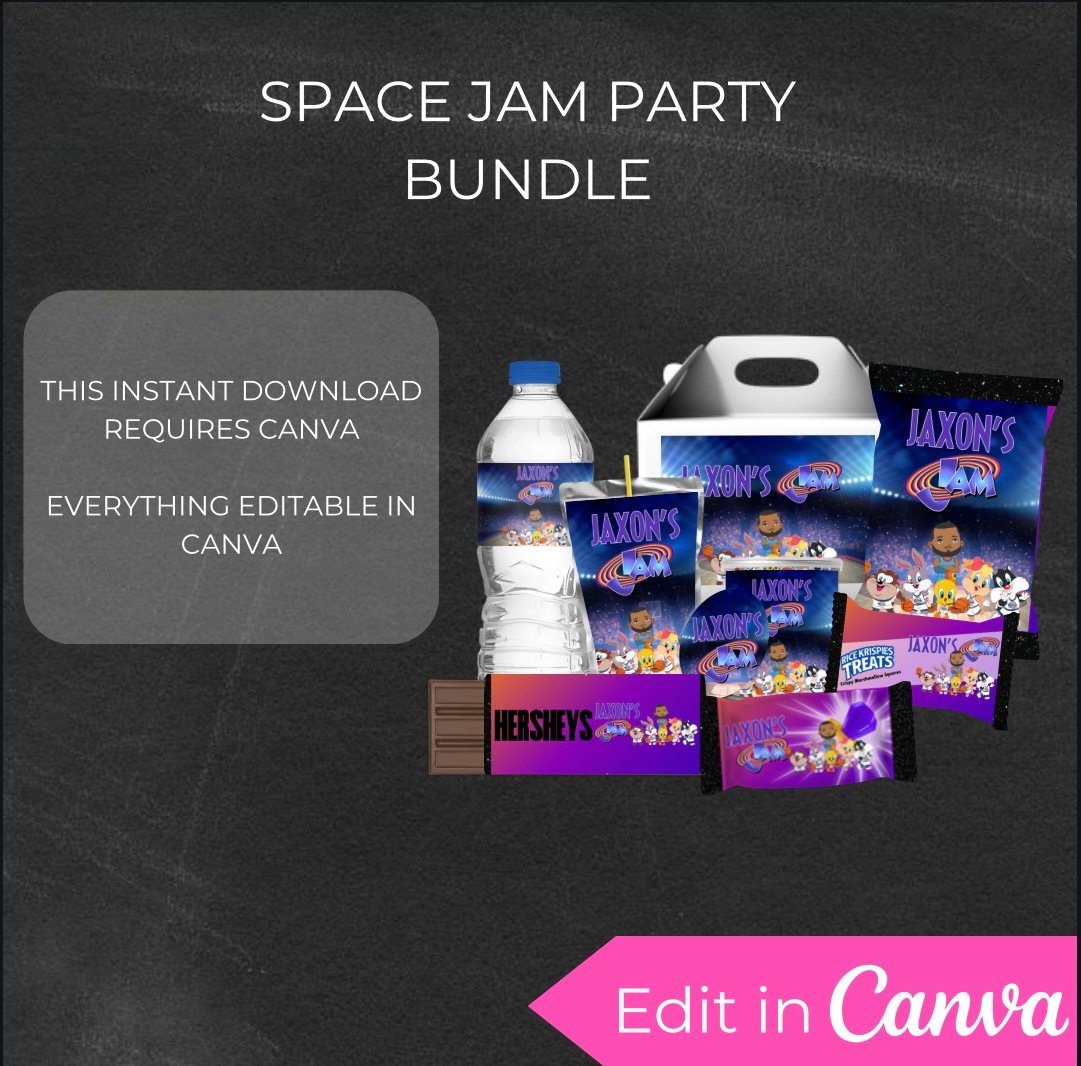 This is a digital Space Jam party favor template. This digital download is editable and printable using CANVA. Everything is the bundle can be edited. You will have a lifetime access to this file.
