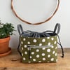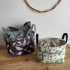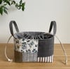 Create your own super handy drawstring closure basket in two sizes using this PDF pattern. You will receive 10 pages of clear, easy to follow step by step instructions and color photos to make these drawstring baskets.