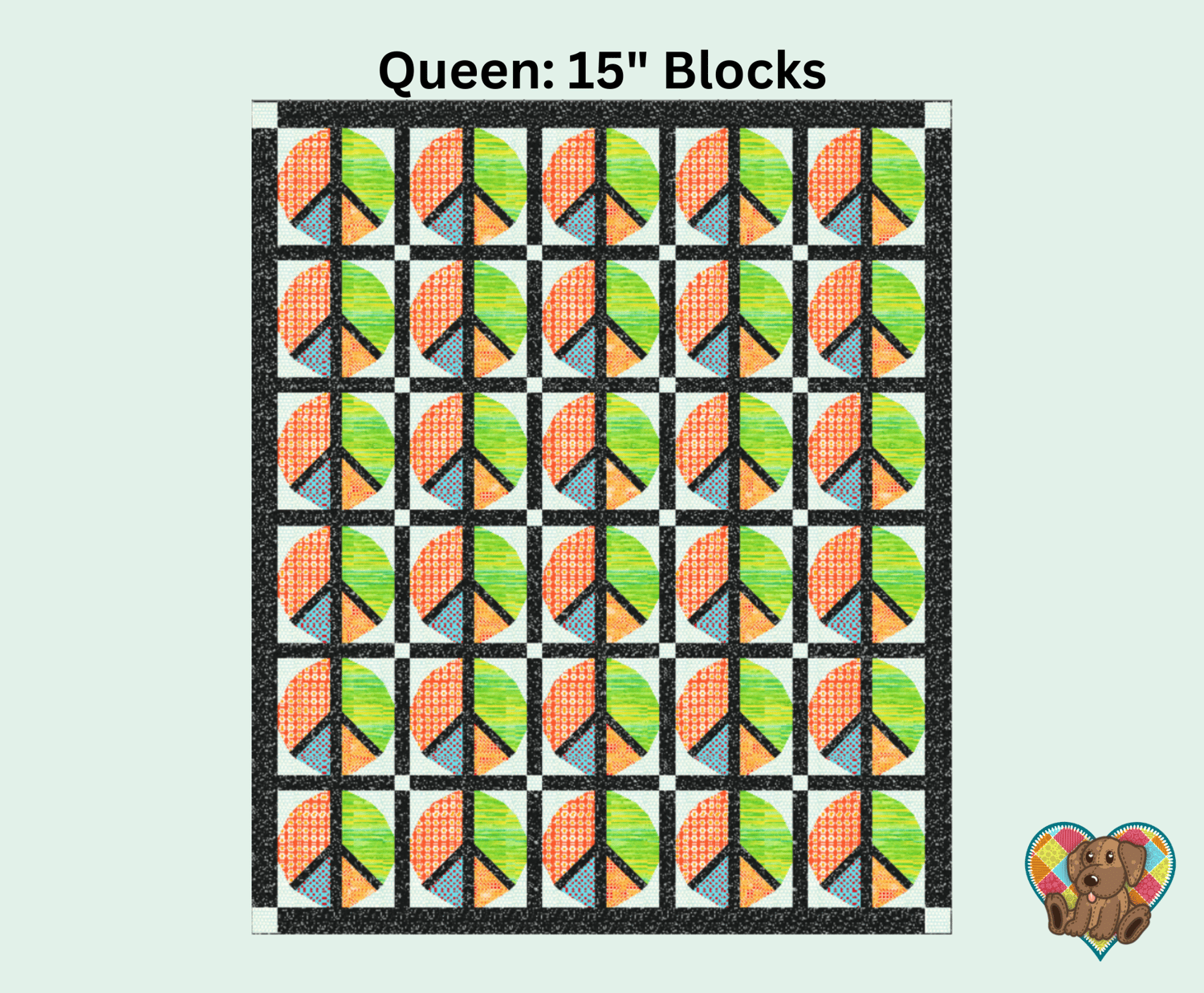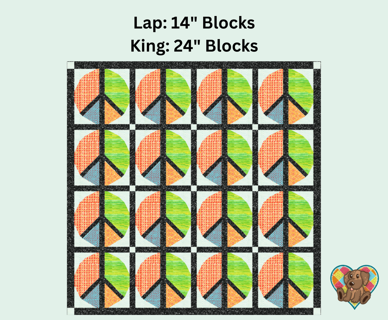 *Note: This pattern includes instructions for a baby (45" X 45"), lap (65" X 65"), twin (73" X 90"), queen (90" X 107"), and king (110" X 110") size quilt.* Blocks are traditional pieced blocks.