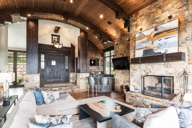 Imagine a second home that you want to return to as soon as you leave it. Ski mountains and dramatic golf views beckon you from virtually every room. The stylish great room has floor-to-ceiling windows that completely open into the wall, allowing you access to the outdoor living room on the spacious deck so you can enjoy Park City’s cool summer evenings. Great entertaining spaces allow you to entertain a few close friends, or a party that everyone will be talking about for years. Ideally located on a very private street that is a short walk to Promontory’s golf, tennis, spa, the Shed, the Mountain garden park, and the fishing pond.