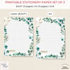 Glitter Gold & Green Leaves Printable Stationery Set Snail Mail Letter Writing Paper