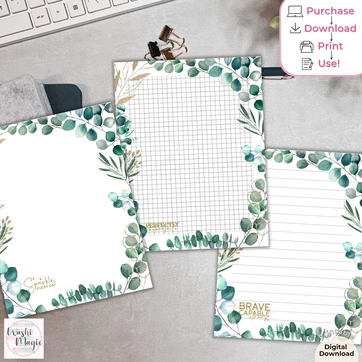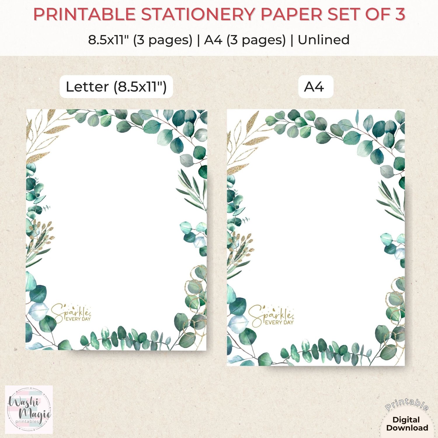 Introducing stunning glitter gold and green leaves printable stationery! Perfect for snail mail enthusiasts and penpals, this set adds a touch of elegance to your correspondence.