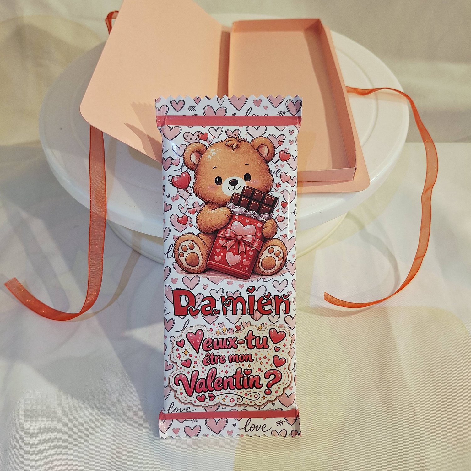 (3 versions : Valentin, Valentine et version anglaise), compatible avec toutes les marques de tablettes de chocolat classiques 100g.