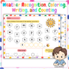 Discover the exciting world of weather recognition with our product, "Weather Recognition, Coloring, Writing, and Counting Worksheets for Preschool, Pre-K, and Kindergarten !" Designed to engage young learners, this interactive activity combines picture recognition, coloring, letter writing, and counting to create a captivating learning experience.