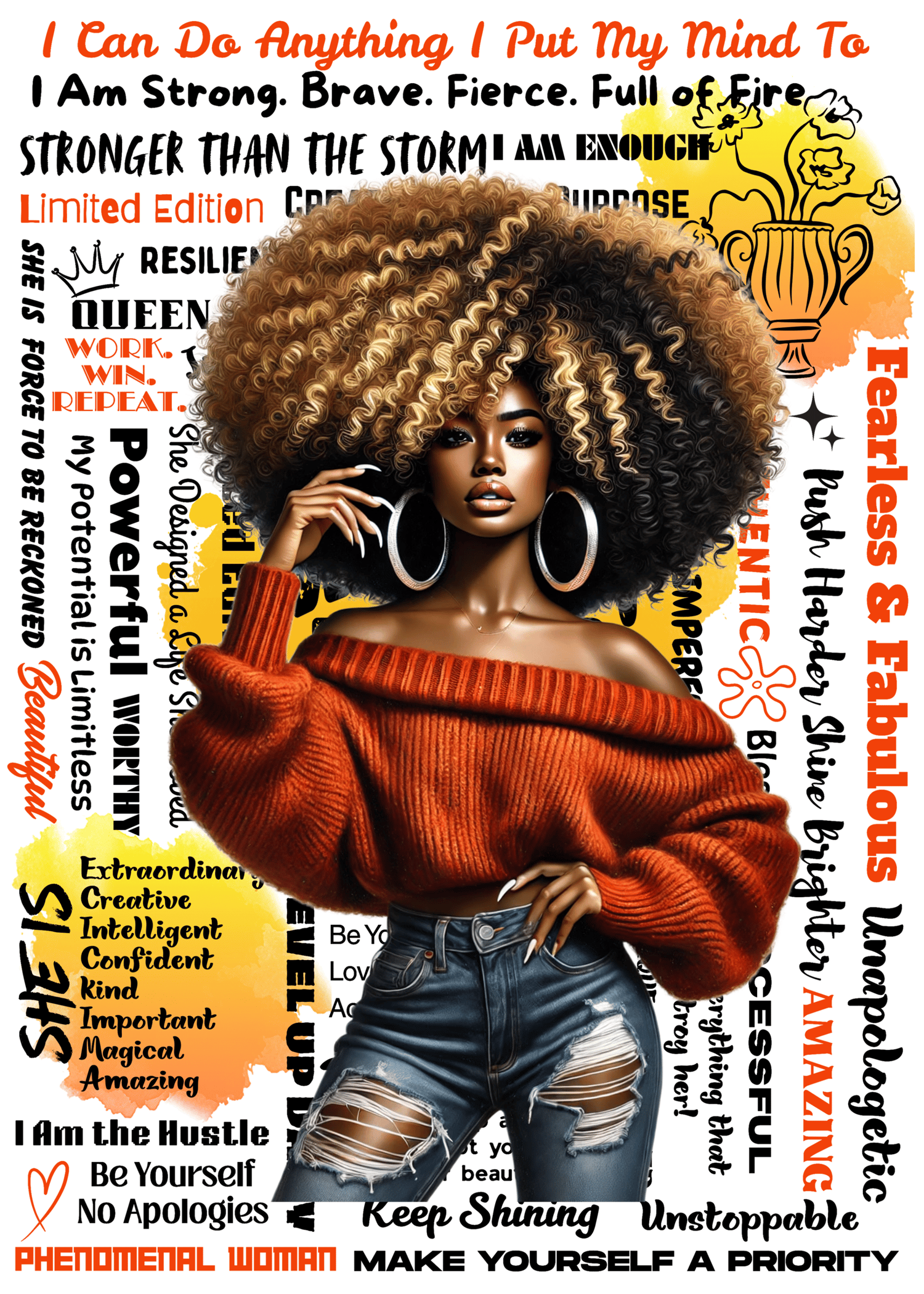 Celebrate your strength and style with this stunning Empowered Afro Girl journal cover! Featuring bold affirmations like “Fearless,” “Unstoppable,” and “I Am Enough,” this printable is perfect for planners, notebooks, or digital journaling.